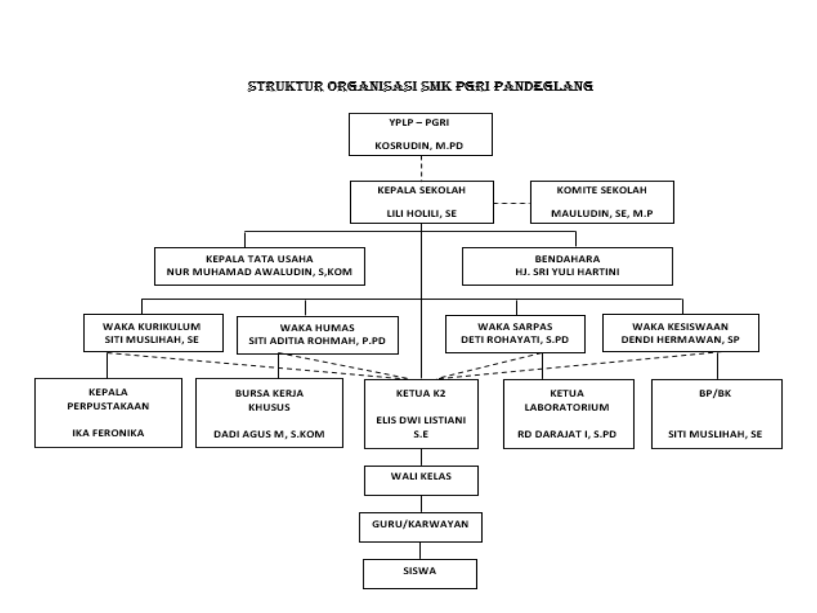 Berikut adalah strukur Organisasi di Smk PGRI Pandeglang :